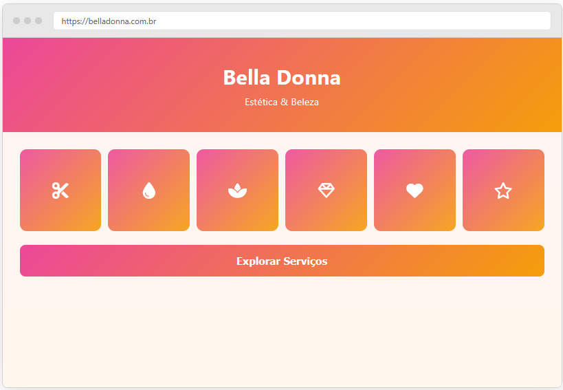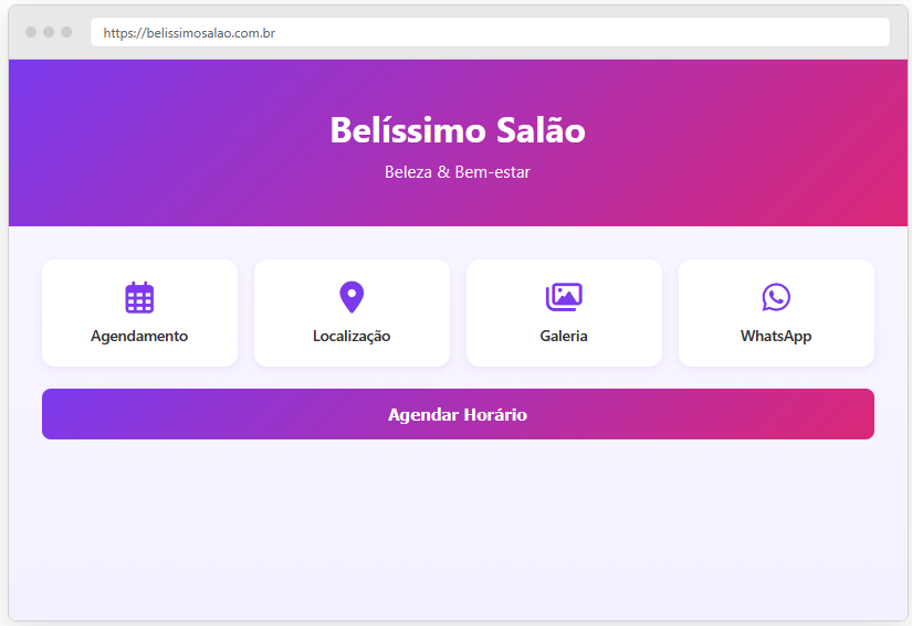 Registramos o endereço do seu site com o nome do seu negócio (ex: seusalao.com.br).