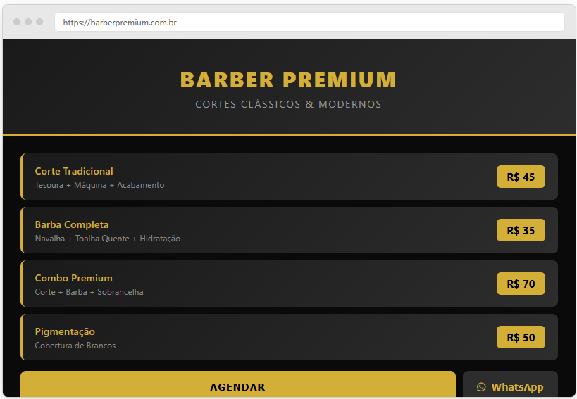 Criamos páginas de agendamento sob medida para negócios locais que querem se destacar, gerar confiança e transformar visitantes em clientes reais.